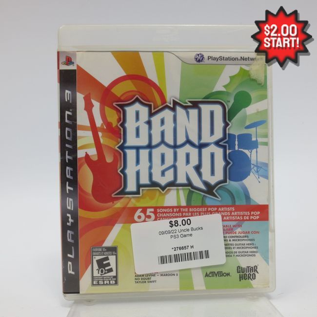 Current Bid: $2.00 [Refresh Price]YOU WILL NEED TO REFRESH THIS PAGE TO SEE UPDATED BID (Log in and this will update automatically) You must LOG IN or REGISTER to see this full page auction listing and bid. Auction is Over Winning Bid Amount: $2.00 **Lot Details: (LOT: Z623) - Band Hero Playstation PS3 Log in to add this lot to your watch list or place a bid |