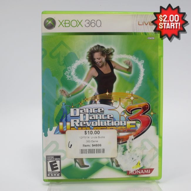 Current Bid: $2.00 [Refresh Price]YOU WILL NEED TO REFRESH THIS PAGE TO SEE UPDATED BID (Log in and this will update automatically) You must LOG IN or REGISTER to see this full page auction listing and bid. Auction is Over Winning Bid Amount: $2.00 **Lot Details: (LOT: Z642) - Dance Dance Revolution Universe 3 Xbox 360 Log in to add this lot to your watch list or place a bid |
