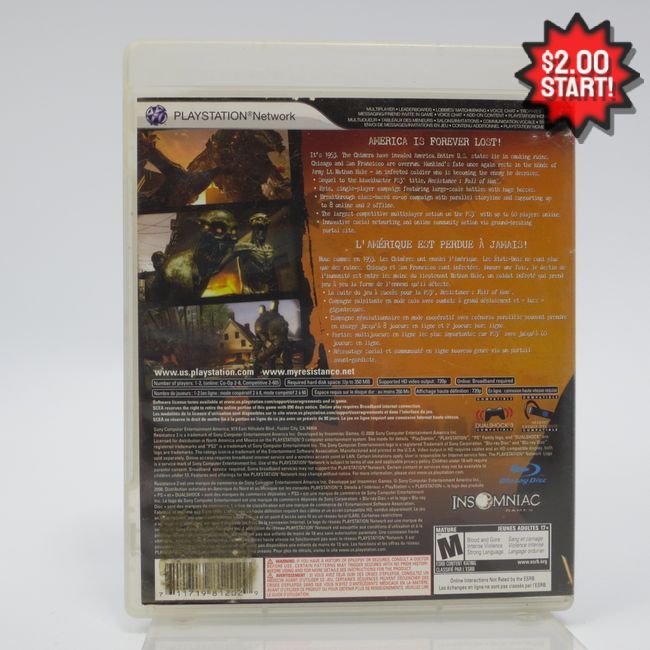 Current Bid: $2.00 [Refresh Price]YOU WILL NEED TO REFRESH THIS PAGE TO SEE UPDATED BID (Log in and this will update automatically) You must LOG IN or REGISTER to see this full page auction listing and bid. Auction is Over Winning Bid Amount: $2.00 **Lot Details: (LOT: Z649) - Resistance 2 Playstation PS3 Log in to add this lot to your watch list or place a bid |