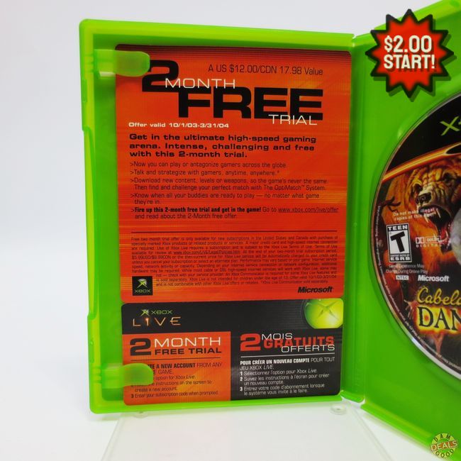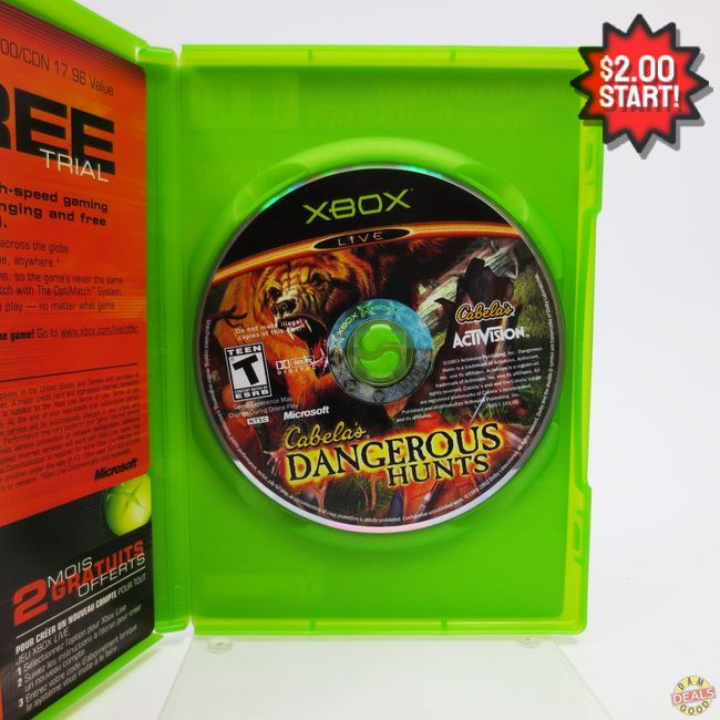 Current Bid: $2.00 [Refresh Price]YOU WILL NEED TO REFRESH THIS PAGE TO SEE UPDATED BID (Log in and this will update automatically) You must LOG IN or REGISTER to see this full page auction listing and bid. Auction is Over Winning Bid Amount: $2.00 **Lot Details: (LOT: Z659) - cabelas dangerous hunts for xbox original. previously enjoyed and inspected by staff. determined to be in excellent playable condition. please view the photos to see how complete and overall condition this game is in. Log in to add this lot to your watch list or place a bid |