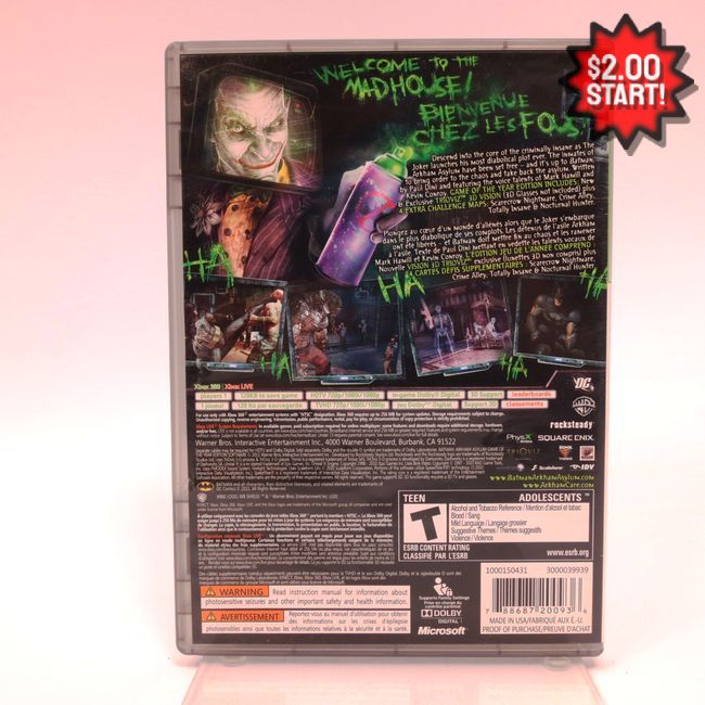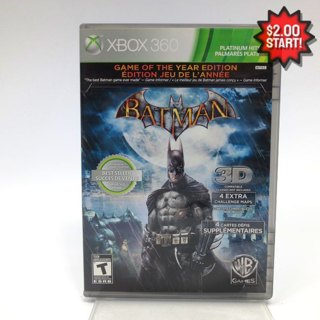 Current Bid: $2.00 [Refresh Price]YOU WILL NEED TO REFRESH THIS PAGE TO SEE UPDATED BID (Log in and this will update automatically) You must LOG IN or REGISTER to see this full page auction listing and bid. Auction is Over Winning Bid Amount: $2.00 **Lot Details: (LOT: Z665) - BATMAN XBOX 360 Log in to add this lot to your watch list or place a bid |