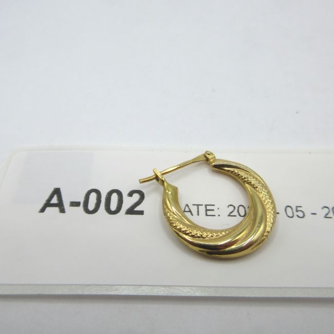 Current Bid: $96.00 [Refresh Price]YOU WILL NEED TO REFRESH THIS PAGE TO SEE UPDATED BID (Log in and this will update automatically) You must LOG IN or REGISTER to see this full page auction listing and bid. Auction is Over Winning Bid Amount: $96.00 **Lot Details: (LOT: A2) - Large 18K (750) Yellow Gold Earring. Marked and tested with an overall weight of 1.9 Grams. Metal detecting find. Log in to add this lot to your watch list or place a bid |