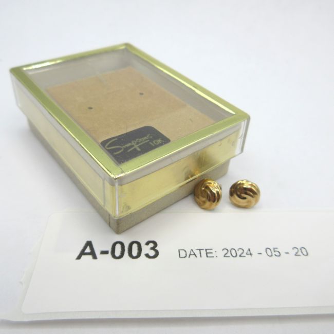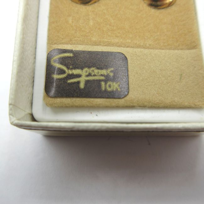 Current Bid: $22.00 [Refresh Price]YOU WILL NEED TO REFRESH THIS PAGE TO SEE UPDATED BID (Log in and this will update automatically) You must LOG IN or REGISTER to see this full page auction listing and bid. Auction is Over Winning Bid Amount: $22.00 **Lot Details: (LOT: A3) - Simpsons Canada, Pair of Vintage 10K Yellow Gold Earrings in original Classic Box. Great piece of Canadiana. Overall weight of .9 Grams with backs. Log in to add this lot to your watch list or place a bid |