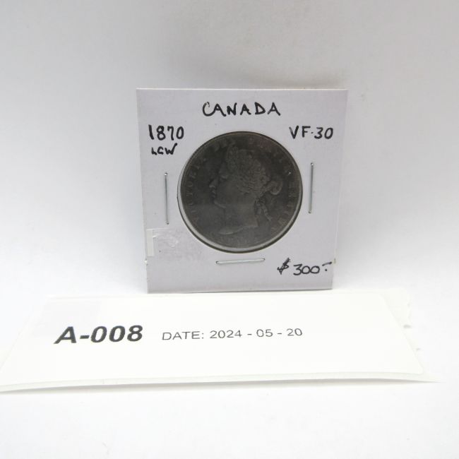 Current Bid: $120.01 [Refresh Price]YOU WILL NEED TO REFRESH THIS PAGE TO SEE UPDATED BID (Log in and this will update automatically) You must LOG IN or REGISTER to see this full page auction listing and bid. Auction is Over Winning Bid Amount: $120.01 **Lot Details: (LOT: A8) - Canada 1870 LCW Silver Half Dollar. Beautiful Victorian Silver Half with light even toning in beautiful condition with No Issues. Canada’s First Half Dollar, .925 Silver. Log in to add this lot to your watch list or place a bid |