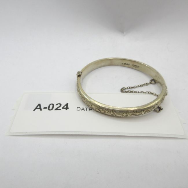 Current Bid: $17.55 [Refresh Price]YOU WILL NEED TO REFRESH THIS PAGE TO SEE UPDATED BID (Log in and this will update automatically) You must LOG IN or REGISTER to see this full page auction listing and bid. Auction is Over Winning Bid Amount: $17.55 **Lot Details: (LOT: A24) - Vintage .925 Sterling Silver Childs Hinged Bracelet. Marked SW&S Sterling Silver”. Beautiful Classic Silver Bracelet with Hand Hammered design with Safety Clasp. Gorgeous Condition. Log in to add this lot to your watch list or place a bid |