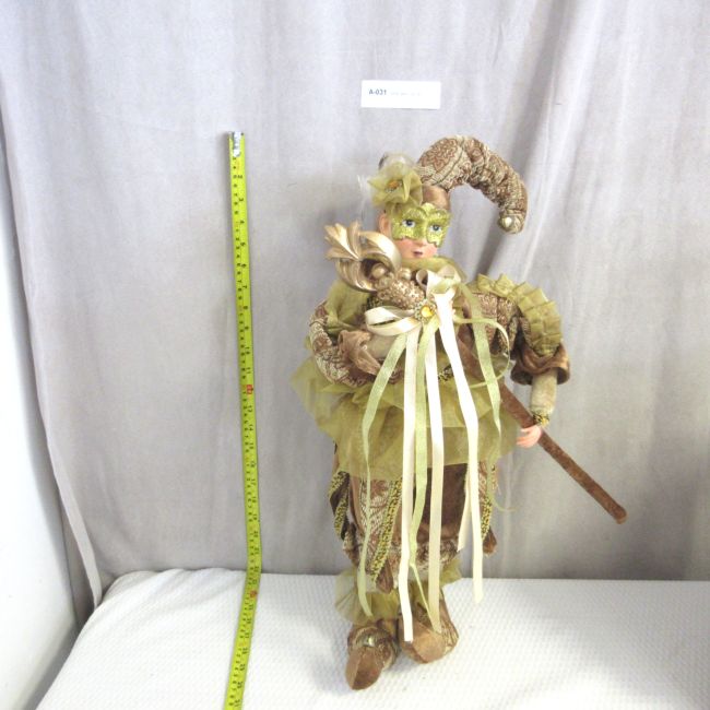 Current Bid: $7.00 [Refresh Price]YOU WILL NEED TO REFRESH THIS PAGE TO SEE UPDATED BID (Log in and this will update automatically) You must LOG IN or REGISTER to see this full page auction listing and bid. Auction is Over Winning Bid Amount: $7.00 **Lot Details: (LOT: A31) - Velvet Gold Dressed Musical Court Jester 22” Log in to add this lot to your watch list or place a bid |