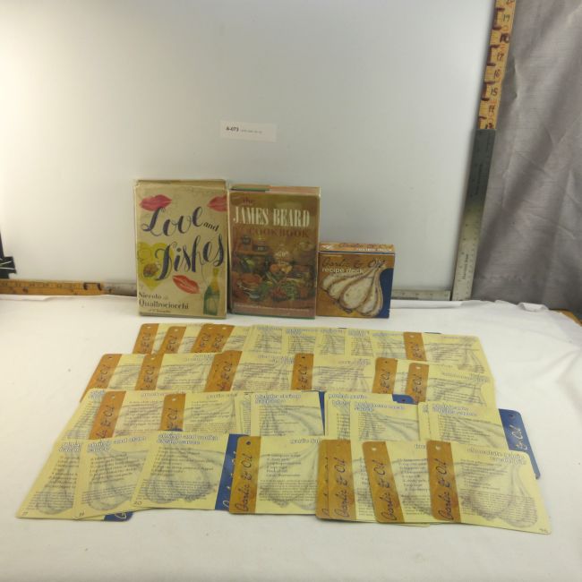 Current Bid: $5.00 [Refresh Price]YOU WILL NEED TO REFRESH THIS PAGE TO SEE UPDATED BID (Log in and this will update automatically) You must LOG IN or REGISTER to see this full page auction listing and bid. Auction is Over Winning Bid Amount: $5.00 **Lot Details: (LOT: A73) - Several vintage cookbooks. One is a First Edition from 1950, Love and Dishes, and the other is a Second Edition from 1961, The James Beard Cookbook. Also, a vintage Garlic & Oil Recipe Card Deck which includes 100 r... Log in to add this lot to your watch list or place a bid |
