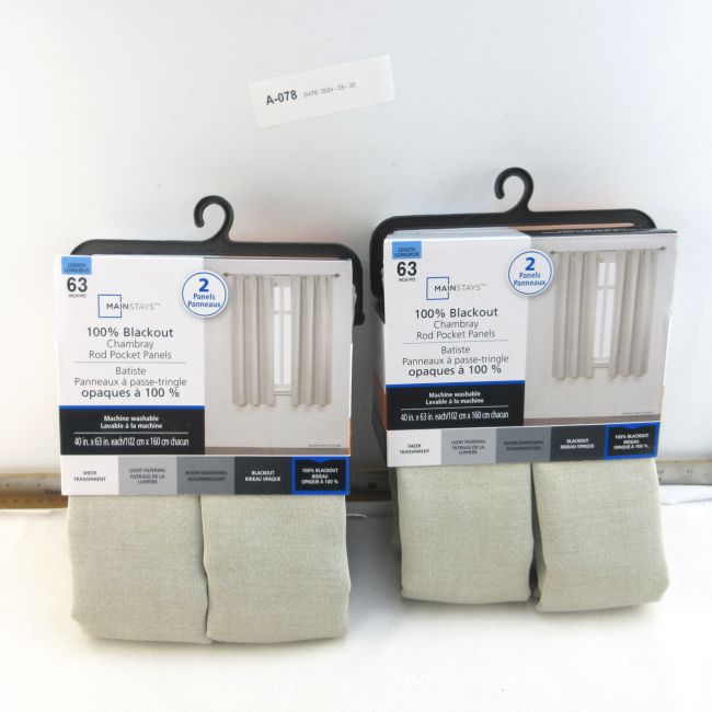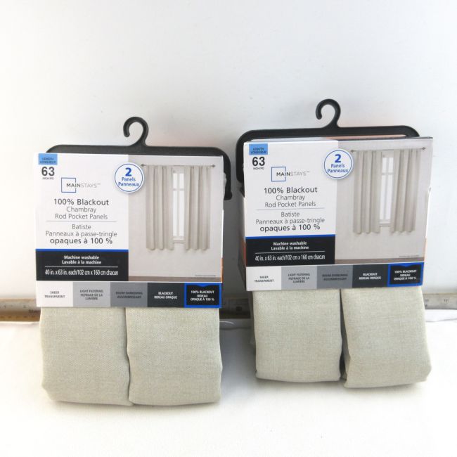 Current Bid: $46.00 [Refresh Price]YOU WILL NEED TO REFRESH THIS PAGE TO SEE UPDATED BID (Log in and this will update automatically) You must LOG IN or REGISTER to see this full page auction listing and bid. Auction is Over Winning Bid Amount: $46.00 **Lot Details: (LOT: A78) - Four brand new blackout window panels. Each one measures 40” wide X 63” long, machine washable. The color is called winter white but looks more like a beigy grey. Log in to add this lot to your watch list or place a bid |