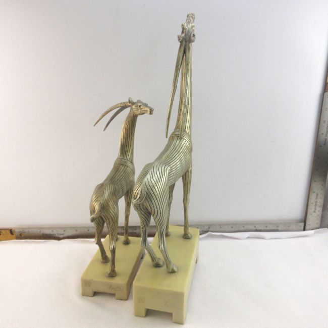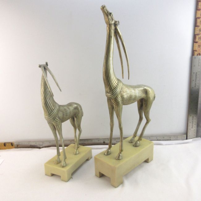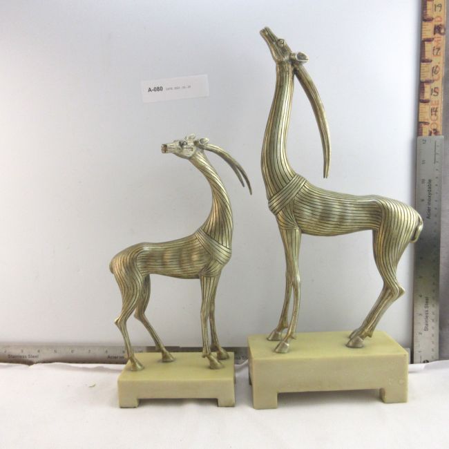 Current Bid: $5.00 [Refresh Price]YOU WILL NEED TO REFRESH THIS PAGE TO SEE UPDATED BID (Log in and this will update automatically) You must LOG IN or REGISTER to see this full page auction listing and bid. Auction is Over Winning Bid Amount: $5.00 **Lot Details: (LOT: A80) - A pair of statues, resin/metal finish, art deco style. One is 12” tall with a base of 5.5” & the other is 17” tall with 7” base. They are marked, The Kindu Collection & in another area there is a decorative ... Log in to add this lot to your watch list or place a bid |