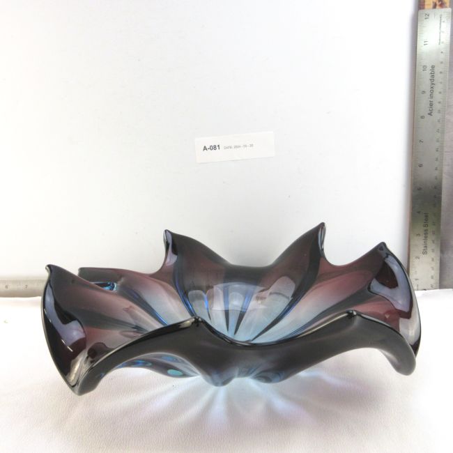 Current Bid: $18.22 [Refresh Price]YOU WILL NEED TO REFRESH THIS PAGE TO SEE UPDATED BID (Log in and this will update automatically) You must LOG IN or REGISTER to see this full page auction listing and bid. Auction is Over Winning Bid Amount: $18.22 **Lot Details: (LOT: A81) - A beautiful glass bowl. It is dark purple at the top and gradually gets lighter with streaks of blue. It is approx. 11.5” wide and 3” high. No damages Log in to add this lot to your watch list or place a bid |