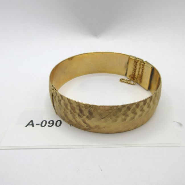 Current Bid: $17.01 [Refresh Price]YOU WILL NEED TO REFRESH THIS PAGE TO SEE UPDATED BID (Log in and this will update automatically) You must LOG IN or REGISTER to see this full page auction listing and bid. Auction is Over Winning Bid Amount: $17.01 **Lot Details: (LOT: A90) - A golden band bracelet with a security clasp on it. Not sure if it's gold or not could find a mark but it is gorgeous and a beautiful peice. Log in to add this lot to your watch list or place a bid |