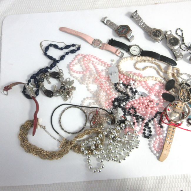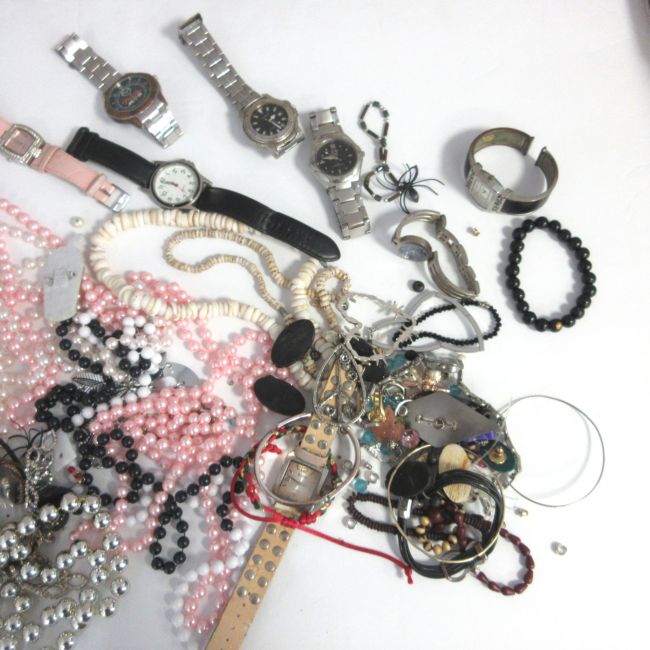 Current Bid: $30.01 [Refresh Price]YOU WILL NEED TO REFRESH THIS PAGE TO SEE UPDATED BID (Log in and this will update automatically) You must LOG IN or REGISTER to see this full page auction listing and bid. Auction is Over Winning Bid Amount: $30.01 **Lot Details: (LOT: A109) - A bag of assorted jewelry, some nice wearable peices, also some crafting items, noticed a few nicer watches in there as well. Log in to add this lot to your watch list or place a bid |