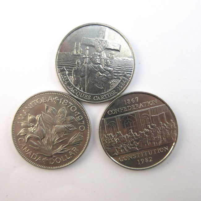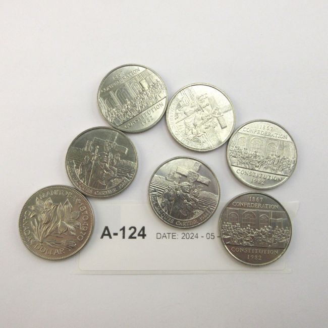 Current Bid: $7.00 [Refresh Price]YOU WILL NEED TO REFRESH THIS PAGE TO SEE UPDATED BID (Log in and this will update automatically) You must LOG IN or REGISTER to see this full page auction listing and bid. Auction is Over Winning Bid Amount: $7.00 **Lot Details: (LOT: A124) - 7 Dollar Coins, 3 Confederation Dollars 1982, 3 Jacques Cartier Dollar Coins 1984, 1 Manitoba Commertive Dollar 1970 Log in to add this lot to your watch list or place a bid |