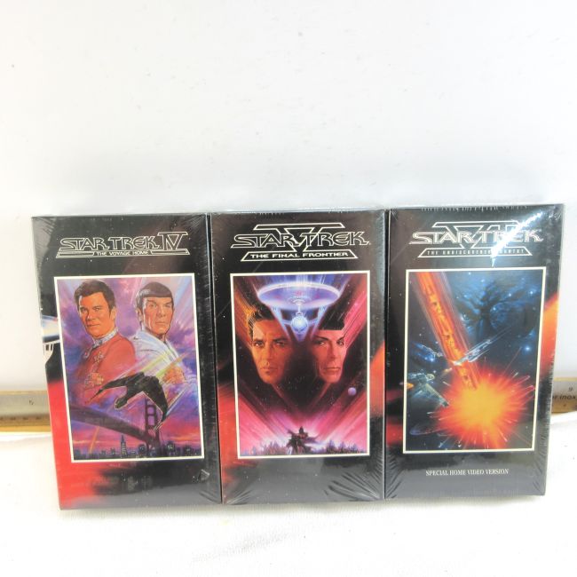 Current Bid: $7.00 [Refresh Price]YOU WILL NEED TO REFRESH THIS PAGE TO SEE UPDATED BID (Log in and this will update automatically) You must LOG IN or REGISTER to see this full page auction listing and bid. Auction is Over Winning Bid Amount: $7.00 **Lot Details: (LOT: A139) - Attention Trekkies! Star Trek six VHS movie tapes never opened approximately $40-$50 Log in to add this lot to your watch list or place a bid |