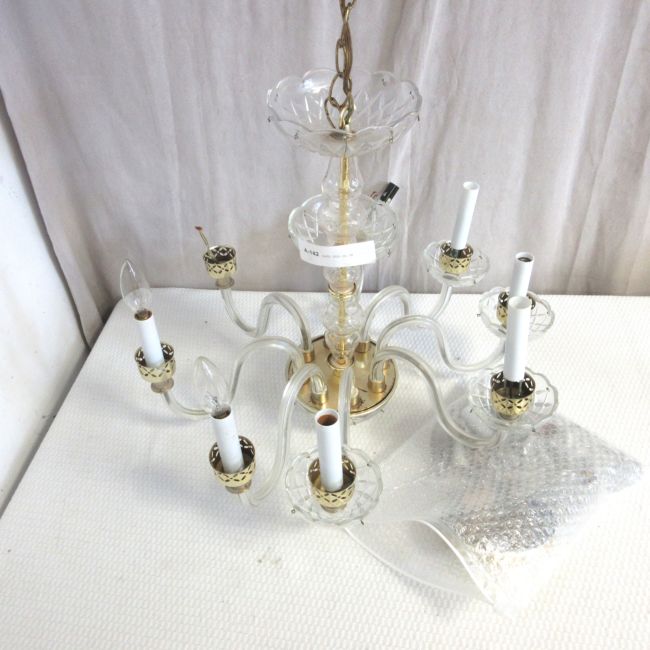 Current Bid: $5.00 [Refresh Price]YOU WILL NEED TO REFRESH THIS PAGE TO SEE UPDATED BID (Log in and this will update automatically) You must LOG IN or REGISTER to see this full page auction listing and bid. Auction is Over Winning Bid Amount: $5.00 **Lot Details: (LOT: A142) - Chandelier with brass accents, has lots of crystals, not sure if complete. Log in to add this lot to your watch list or place a bid |