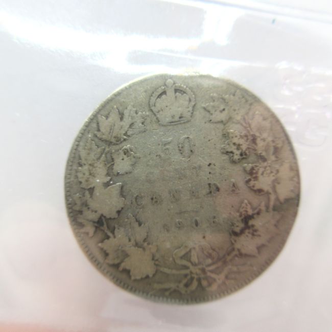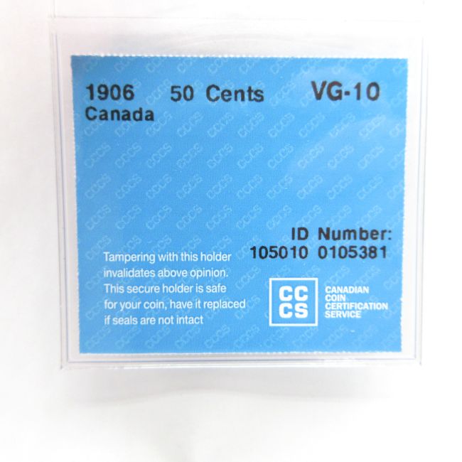 Current Bid: $15.00 [Refresh Price]YOU WILL NEED TO REFRESH THIS PAGE TO SEE UPDATED BID (Log in and this will update automatically) You must LOG IN or REGISTER to see this full page auction listing and bid. Auction is Over Winning Bid Amount: $15.00 **Lot Details: (LOT: A166) - 1906 Canada 50 Cents, CCCS graded VG-10, 92.5 percent silver Log in to add this lot to your watch list or place a bid |