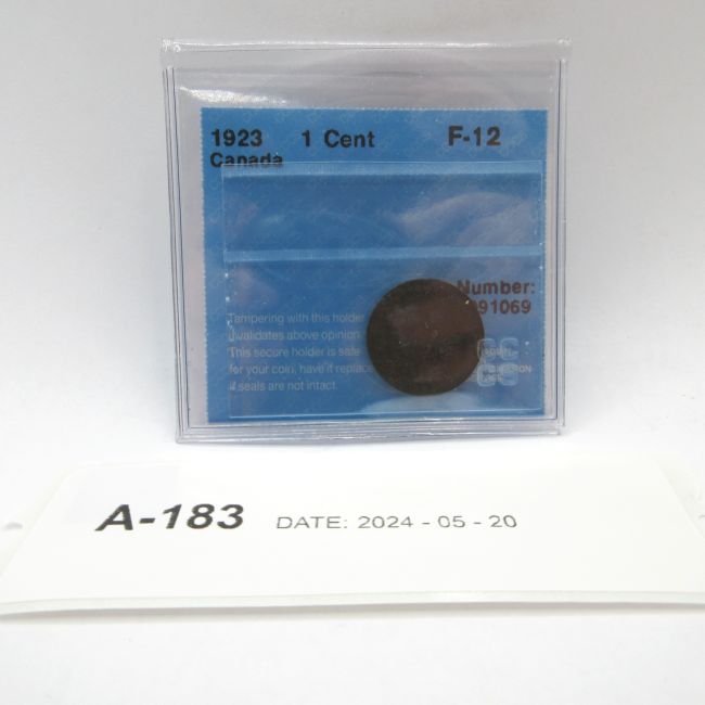 Current Bid: $9.10 [Refresh Price]YOU WILL NEED TO REFRESH THIS PAGE TO SEE UPDATED BID (Log in and this will update automatically) You must LOG IN or REGISTER to see this full page auction listing and bid. Auction is Over Winning Bid Amount: $9.10 **Lot Details: (LOT: A183) - 1923 Canada 1 Cent, CCCS graded F-12 Log in to add this lot to your watch list or place a bid |