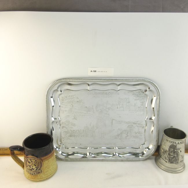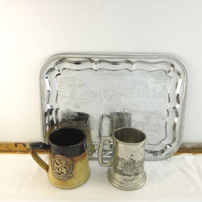 Current Bid: $5.00 [Refresh Price]YOU WILL NEED TO REFRESH THIS PAGE TO SEE UPDATED BID (Log in and this will update automatically) You must LOG IN or REGISTER to see this full page auction listing and bid. Auction is Over Winning Bid Amount: $5.00 **Lot Details: (LOT: A188) - Souvenir tray from Scotland. Piper and castles etched souvenir mugs from Scotland. Log in to add this lot to your watch list or place a bid |