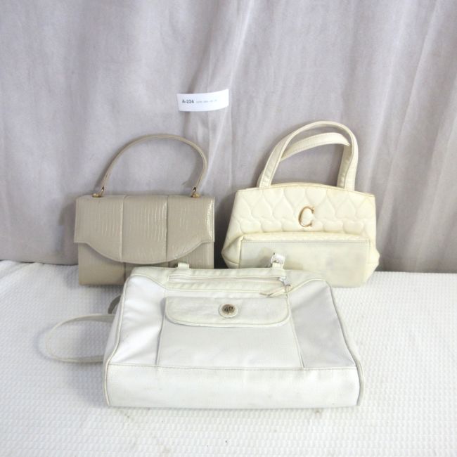 Current Bid: $[Refresh Price]YOU WILL NEED TO REFRESH THIS PAGE TO SEE UPDATED BID (Log in and this will update automatically) You must LOG IN or REGISTER to see this full page auction listing and bid. Auction is Over Winning Bid Amount: $This item did not sell **Lot Details: (LOT: A224) - Lot of beige and cream handbags Log in to add this lot to your watch list or place a bid |