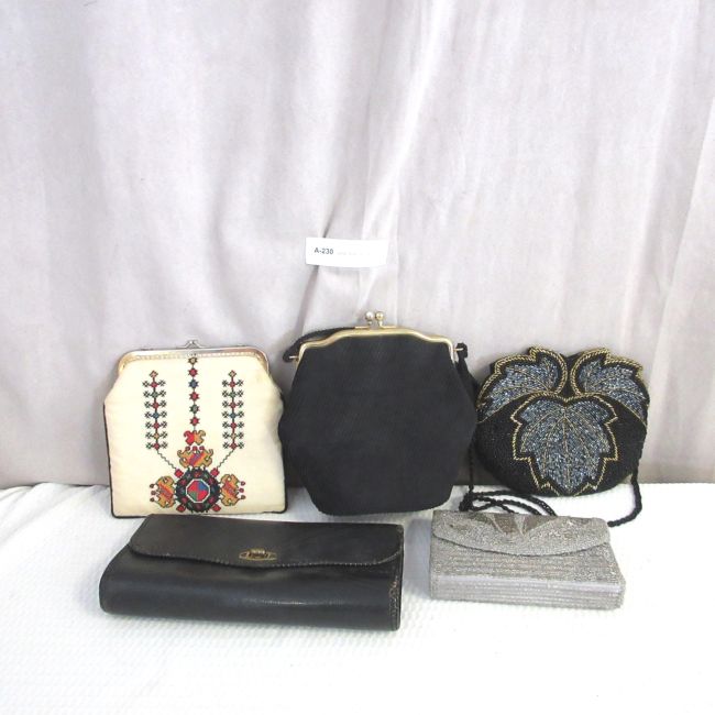 Current Bid: $9.00 [Refresh Price]YOU WILL NEED TO REFRESH THIS PAGE TO SEE UPDATED BID (Log in and this will update automatically) You must LOG IN or REGISTER to see this full page auction listing and bid. Auction is Over Winning Bid Amount: $9.00 **Lot Details: (LOT: A230) - A lot of vintage purses Log in to add this lot to your watch list or place a bid |