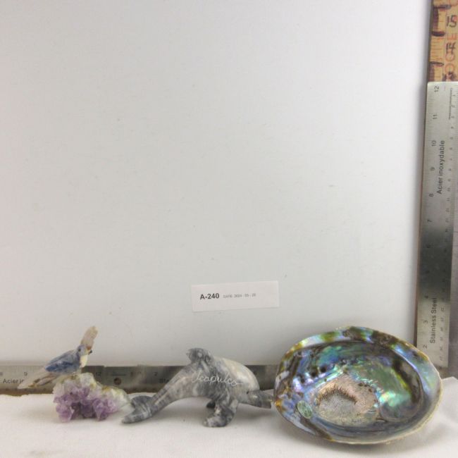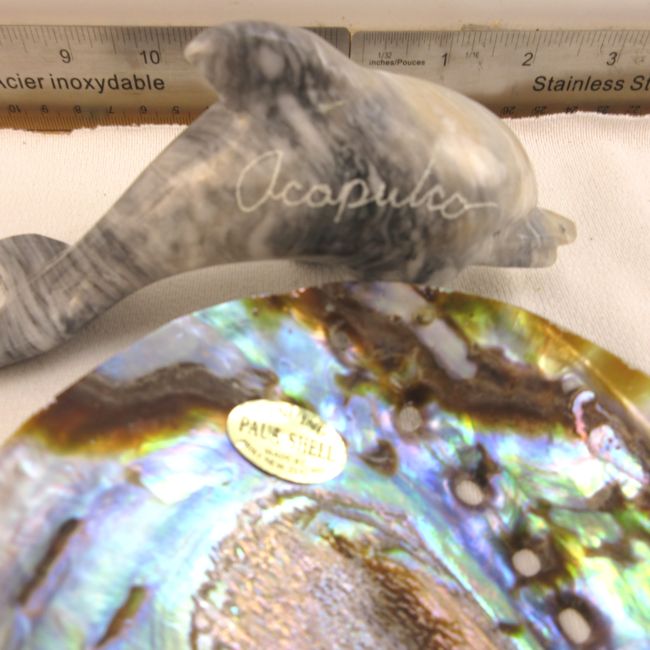 Current Bid: $7.03 [Refresh Price]YOU WILL NEED TO REFRESH THIS PAGE TO SEE UPDATED BID (Log in and this will update automatically) You must LOG IN or REGISTER to see this full page auction listing and bid. Auction is Over Winning Bid Amount: $7.03 **Lot Details: (LOT: A240) - Lot of tropical items, including a parrot on amethyst, a paua shell and a carved dolphin Log in to add this lot to your watch list or place a bid |