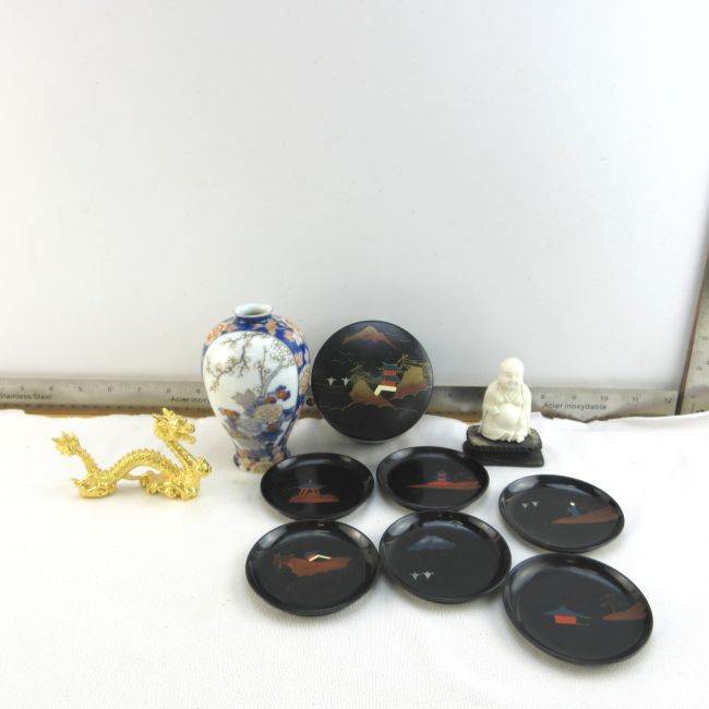 Current Bid: $[Refresh Price]YOU WILL NEED TO REFRESH THIS PAGE TO SEE UPDATED BID (Log in and this will update automatically) You must LOG IN or REGISTER to see this full page auction listing and bid. Auction is Over Winning Bid Amount: $This item did not sell **Lot Details: (LOT: A244) - Asian collectibles, including a nice coaster set and a nice Buddha Log in to add this lot to your watch list or place a bid |