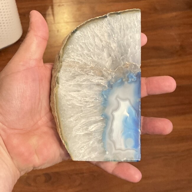 Current Bid: $23.00 [Refresh Price]YOU WILL NEED TO REFRESH THIS PAGE TO SEE UPDATED BID (Log in and this will update automatically) You must LOG IN or REGISTER to see this full page auction listing and bid. Auction is Over Winning Bid Amount: $23.00 **Lot Details: (LOT: A453) - Incredible blue agate crystal slab. Nice and thick so it stands on its own and is just over 6 inches long intense blue surrounded by an amazing clear crystal structure. Log in to add this lot to your watch list or place a bid |