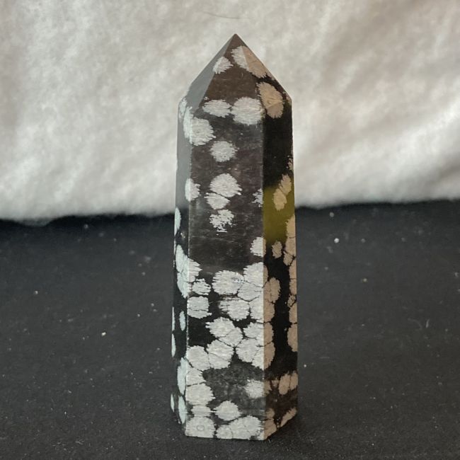 Current Bid: $7.00 [Refresh Price]YOU WILL NEED TO REFRESH THIS PAGE TO SEE UPDATED BID (Log in and this will update automatically) You must LOG IN or REGISTER to see this full page auction listing and bid. Auction is Over Winning Bid Amount: $7.00 **Lot Details: (LOT: A456) - Natural SNOWFLAKE obsidian cut into a 6 sided tower with a nice sharp point. 3 inches tall and lots of pattern in it. Very nice crystal to add to the collection Log in to add this lot to your watch list or place a bid |