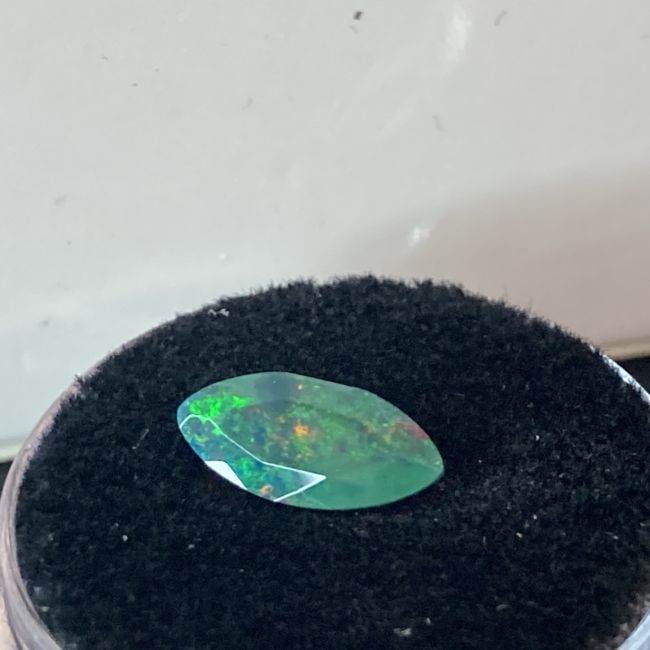 Current Bid: $7.00 [Refresh Price]YOU WILL NEED TO REFRESH THIS PAGE TO SEE UPDATED BID (Log in and this will update automatically) You must LOG IN or REGISTER to see this full page auction listing and bid. Auction is Over Winning Bid Amount: $7.00 **Lot Details: (LOT: A457) - Natural Ethiopian Smoked Faceted Welo Opal. This weighs 0.65ct and has loads of color flashes in it. Has taken a overall teal green hue primarily as well. Log in to add this lot to your watch list or place a bid |