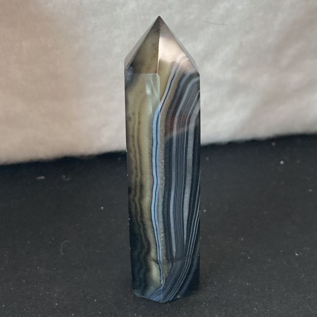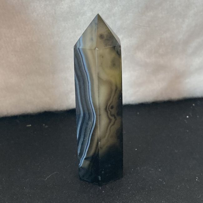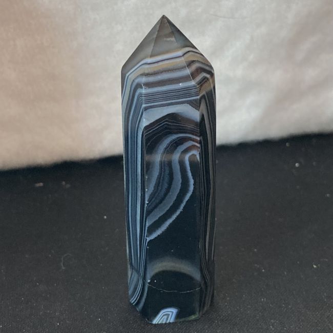 Current Bid: $7.00 [Refresh Price]YOU WILL NEED TO REFRESH THIS PAGE TO SEE UPDATED BID (Log in and this will update automatically) You must LOG IN or REGISTER to see this full page auction listing and bid. Auction is Over Winning Bid Amount: $7.00 **Lot Details: (LOT: A458) - Natural black lace agate crystal tower. Look at the amazing banding in this one! 3 inches tall and perfect tip. This is a really nice addition to your collection or a great start to one! Log in to add this lot to your watch list or place a bid |