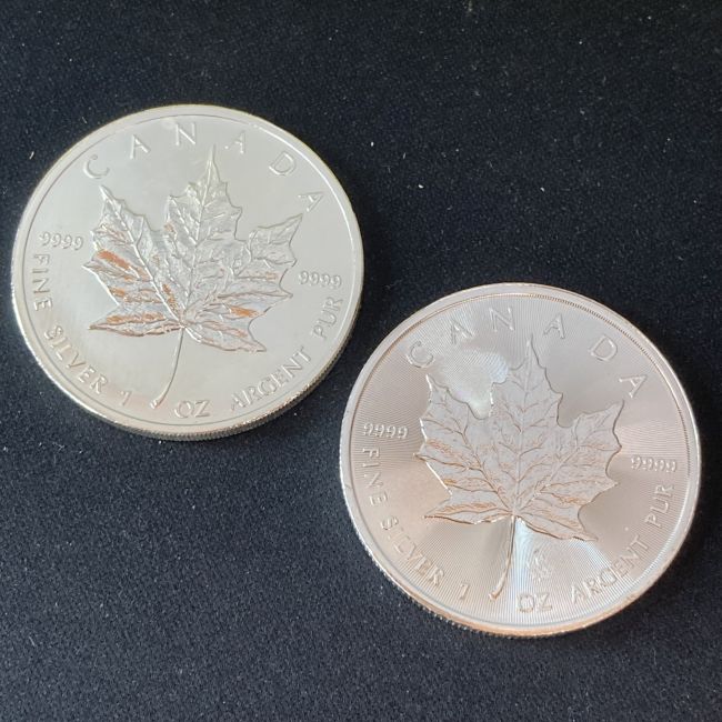 Current Bid: $90.00 [Refresh Price]YOU WILL NEED TO REFRESH THIS PAGE TO SEE UPDATED BID (Log in and this will update automatically) You must LOG IN or REGISTER to see this full page auction listing and bid. Auction is Over Winning Bid Amount: $90.00 **Lot Details: (LOT: A459) - Two 1 OUNCE silver 5 Dollar Maple .9999 fine silver coins. This is TAX free as it is BULLION SILVER and a great investment. Two full ounces!! Log in to add this lot to your watch list or place a bid |