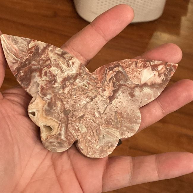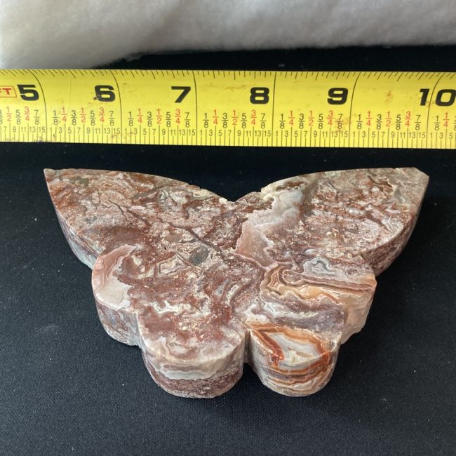 Current Bid: $19.00 [Refresh Price]YOU WILL NEED TO REFRESH THIS PAGE TO SEE UPDATED BID (Log in and this will update automatically) You must LOG IN or REGISTER to see this full page auction listing and bid. Auction is Over Winning Bid Amount: $19.00 **Lot Details: (LOT: A474) - Crazy Lace Agate or AKA Mexican Happy Agate. Carved Butterfly, Stands on its own as its nice and thick. Has a natural druzy inclusion and is 5 inches wide. Backside tip of the wing does not come to point but it is no... Log in to add this lot to your watch list or place a bid |