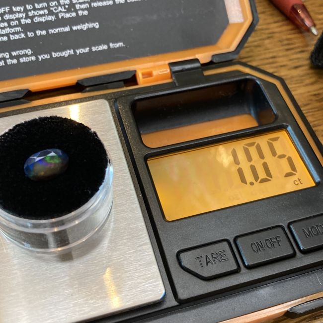 Current Bid: $34.00 [Refresh Price]YOU WILL NEED TO REFRESH THIS PAGE TO SEE UPDATED BID (Log in and this will update automatically) You must LOG IN or REGISTER to see this full page auction listing and bid. Auction is Over Winning Bid Amount: $34.00 **Lot Details: (LOT: A477) - Black Opal, Natural Ethiopian Smoked Faceted Welo Opal faceted and polished. 1.05ct and packed full of green, blue and red hues of color flashes. Log in to add this lot to your watch list or place a bid |