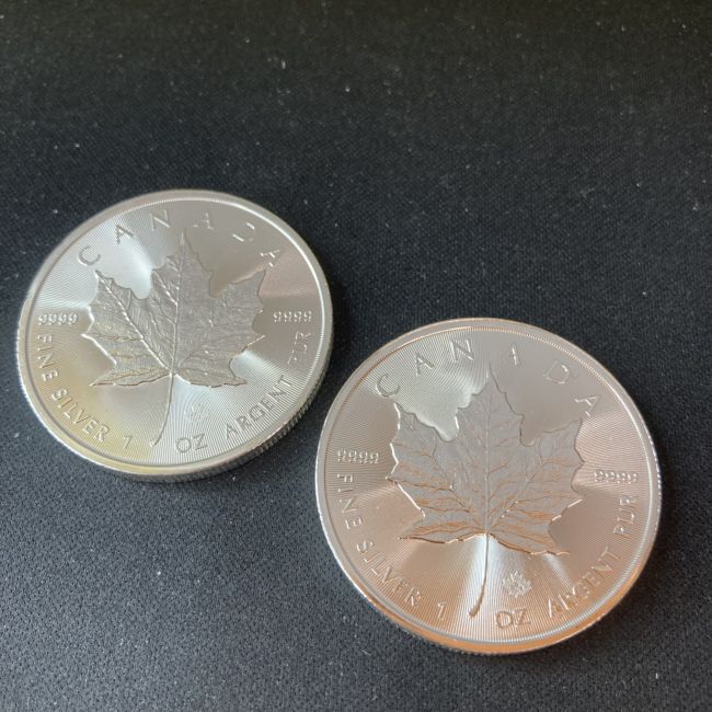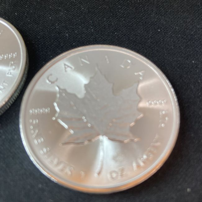 Current Bid: $92.00 [Refresh Price]YOU WILL NEED TO REFRESH THIS PAGE TO SEE UPDATED BID (Log in and this will update automatically) You must LOG IN or REGISTER to see this full page auction listing and bid. Auction is Over Winning Bid Amount: $92.00 **Lot Details: (LOT: A479) - Two 1 OUNCE silver 5 Dollar Maple .9999 fine silver coins. This is TAX free as it is BULLION SILVER and a great investment. Two full ounces!! Log in to add this lot to your watch list or place a bid |