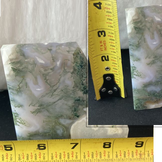 Current Bid: $5.00 [Refresh Price]YOU WILL NEED TO REFRESH THIS PAGE TO SEE UPDATED BID (Log in and this will update automatically) You must LOG IN or REGISTER to see this full page auction listing and bid. Auction is Over Winning Bid Amount: $5.00 **Lot Details: (LOT: A493) - Moss Agate Freeform Slab. Semi translucent. This will stand on its own but would look great in a stand to. 3.5 x 3.5 inch approx size. Check out the photo with the light going through. Neat! Log in to add this lot to your watch list or place a bid |