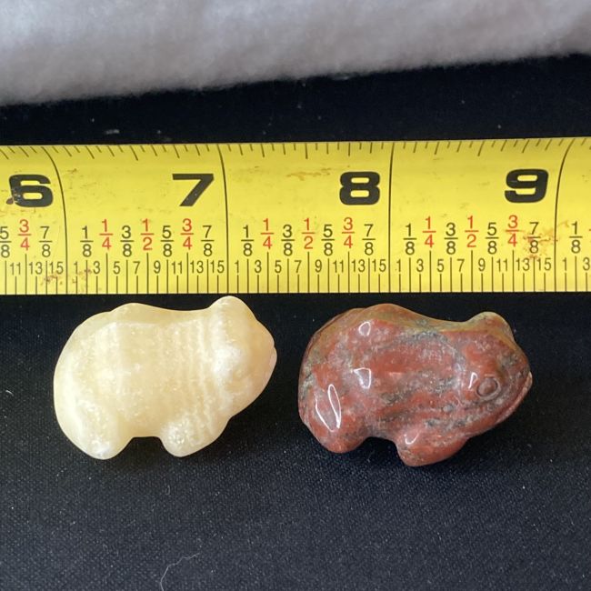 Current Bid: $11.00 [Refresh Price]YOU WILL NEED TO REFRESH THIS PAGE TO SEE UPDATED BID (Log in and this will update automatically) You must LOG IN or REGISTER to see this full page auction listing and bid. Auction is Over Winning Bid Amount: $11.00 **Lot Details: (LOT: A498) - Red Jasper and Yellow Calcite carved frogs. Just over an inch wide each. Log in to add this lot to your watch list or place a bid |