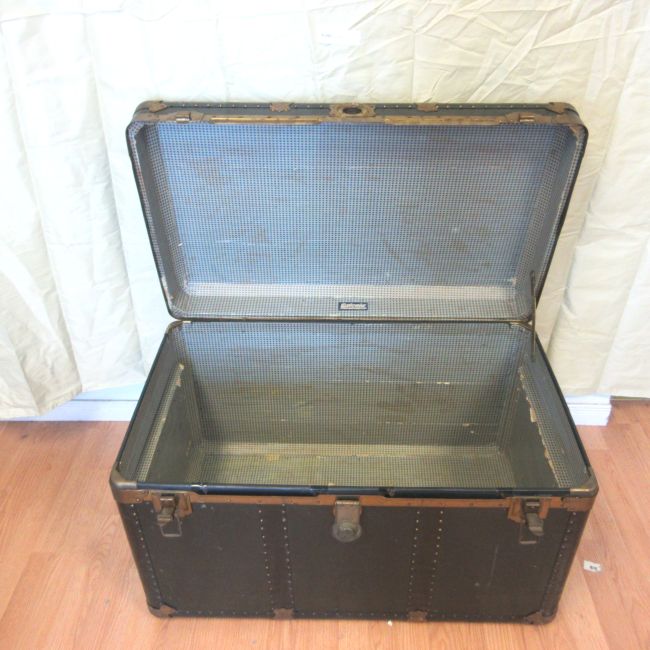 Current Bid: $23.00 [Refresh Price]YOU WILL NEED TO REFRESH THIS PAGE TO SEE UPDATED BID (Log in and this will update automatically) You must LOG IN or REGISTER to see this full page auction listing and bid. Auction is Over Winning Bid Amount: $23.00 **Lot Details: (LOT: A253) - Nice vintage metal trunk with some original stickers on it, it is 35x21x23 Log in to add this lot to your watch list or place a bid |