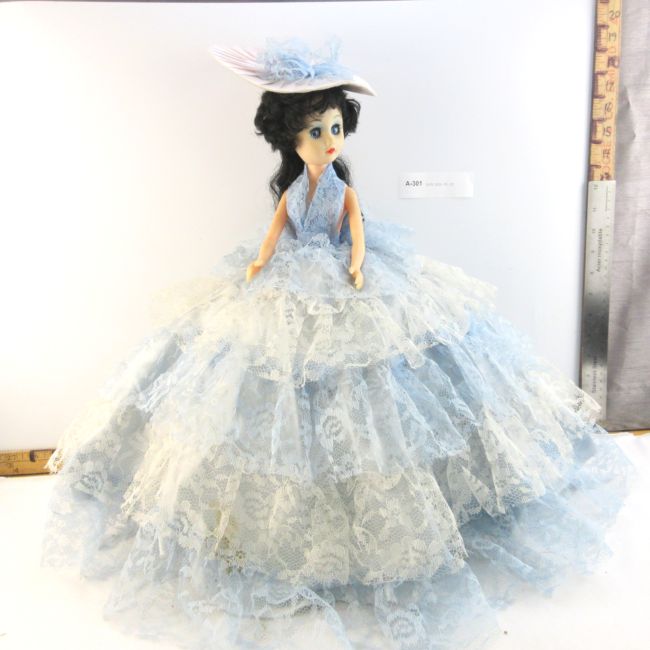 Current Bid: $5.00 [Refresh Price]YOU WILL NEED TO REFRESH THIS PAGE TO SEE UPDATED BID (Log in and this will update automatically) You must LOG IN or REGISTER to see this full page auction listing and bid. Auction is Over Winning Bid Amount: $5.00 **Lot Details: (LOT: A301) - Vintage Blue Bonnet Hat Tall Doll with original crinoline lace Dress, 18.5" Log in to add this lot to your watch list or place a bid |