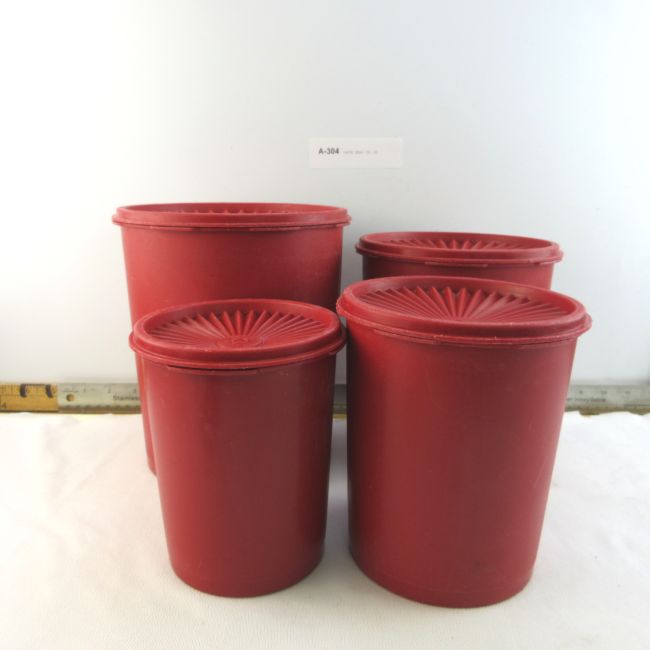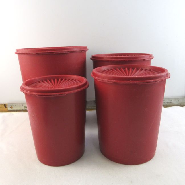 Current Bid: $26.01 [Refresh Price]YOU WILL NEED TO REFRESH THIS PAGE TO SEE UPDATED BID (Log in and this will update automatically) You must LOG IN or REGISTER to see this full page auction listing and bid. Auction is Over Winning Bid Amount: $26.01 **Lot Details: (LOT: A304) - MCM Rare Colour 4 TupperWare Nesting Canisters Burgundy with original one touch snap tight Lids, complete Stackable Set Log in to add this lot to your watch list or place a bid |