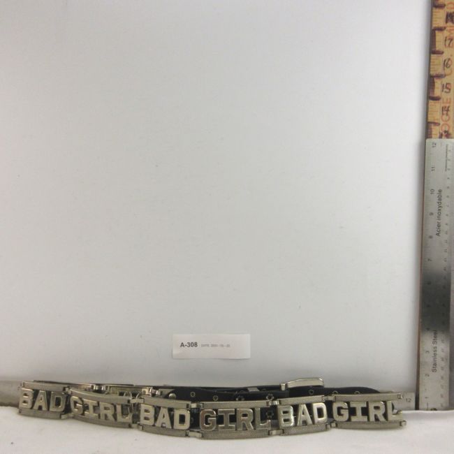 Current Bid: $5.00 [Refresh Price]YOU WILL NEED TO REFRESH THIS PAGE TO SEE UPDATED BID (Log in and this will update automatically) You must LOG IN or REGISTER to see this full page auction listing and bid. Auction is Over Winning Bid Amount: $5.00 **Lot Details: (LOT: A308) - Cool "BAD GIRL" solid Wide Belt 41.5" long and heavy ! Log in to add this lot to your watch list or place a bid |