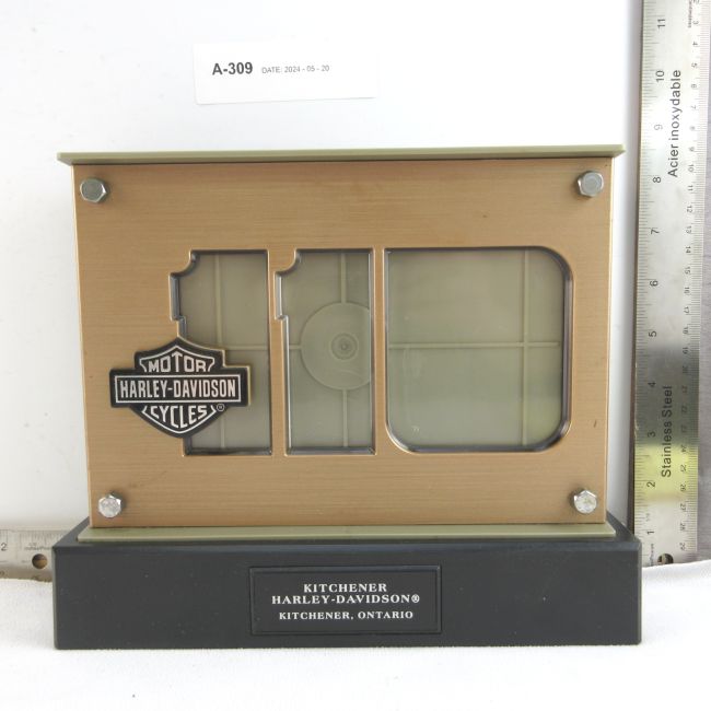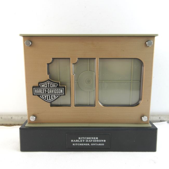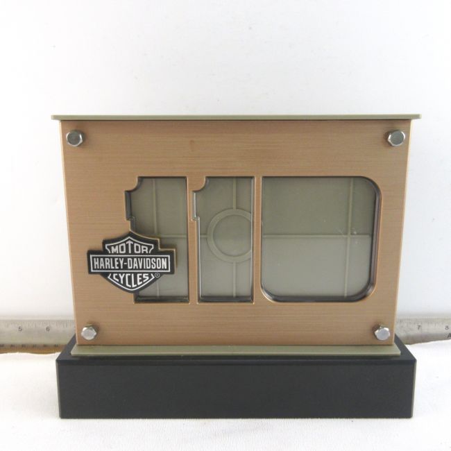 Current Bid: $5.00 [Refresh Price]YOU WILL NEED TO REFRESH THIS PAGE TO SEE UPDATED BID (Log in and this will update automatically) You must LOG IN or REGISTER to see this full page auction listing and bid. Auction is Over Winning Bid Amount: $5.00 **Lot Details: (LOT: A309) - Harley Davidson MotorCycles Photo? dual sided Plaque Stand which appears never used Log in to add this lot to your watch list or place a bid |
