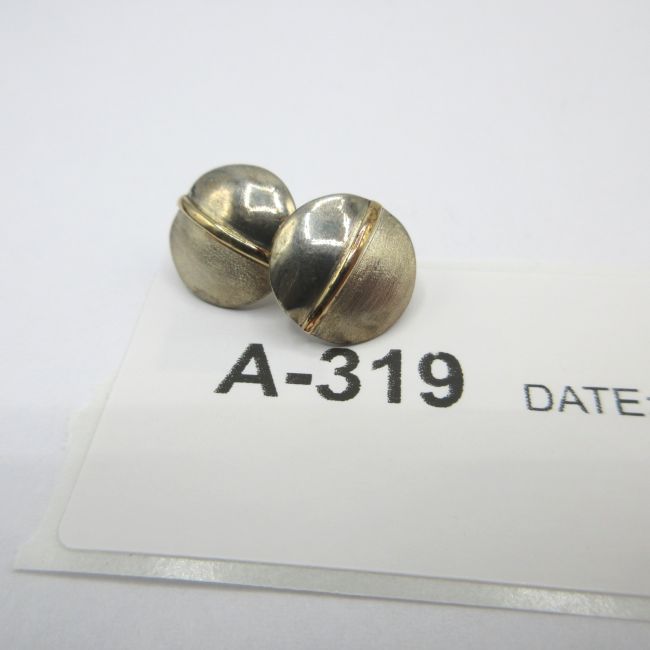 Current Bid: $12.00 [Refresh Price]YOU WILL NEED TO REFRESH THIS PAGE TO SEE UPDATED BID (Log in and this will update automatically) You must LOG IN or REGISTER to see this full page auction listing and bid. Auction is Over Winning Bid Amount: $12.00 **Lot Details: (LOT: A319) - 14K Gold Stripe And Sterling Button Earrings Verified Gold & Sterling And Marked "14K Sterling" designer initials LWD Log in to add this lot to your watch list or place a bid |