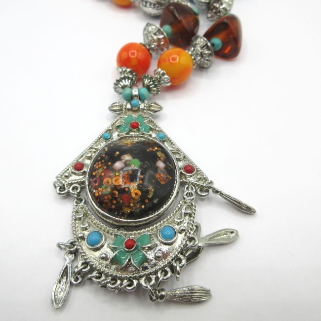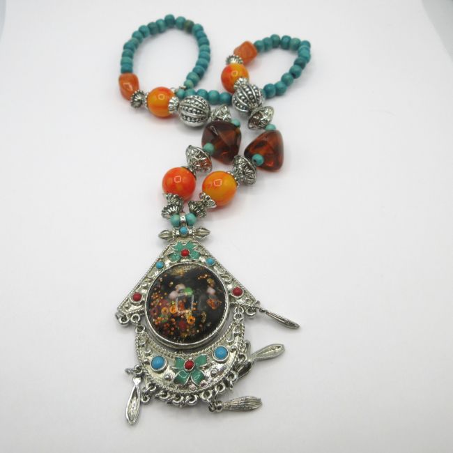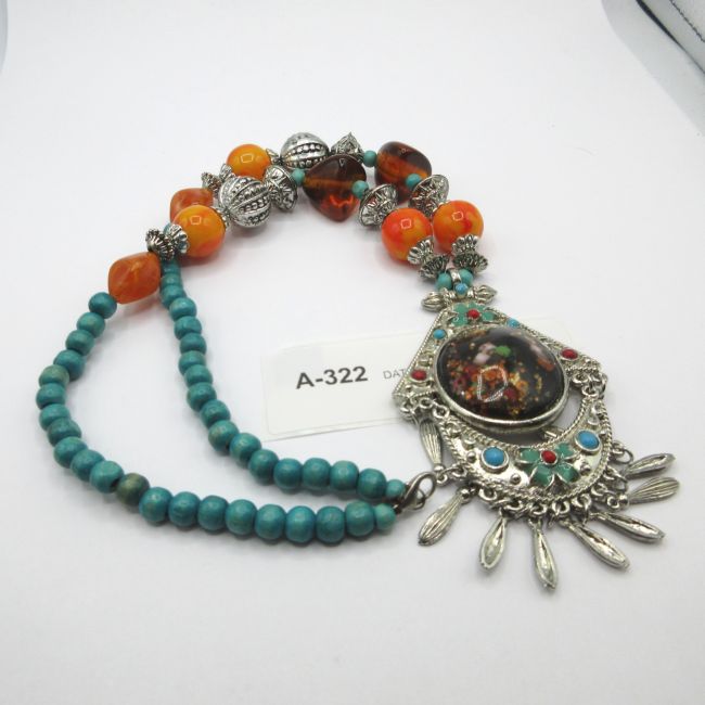 Current Bid: $5.00 [Refresh Price]YOU WILL NEED TO REFRESH THIS PAGE TO SEE UPDATED BID (Log in and this will update automatically) You must LOG IN or REGISTER to see this full page auction listing and bid. Auction is Over Winning Bid Amount: $5.00 **Lot Details: (LOT: A322) - Beautiful Chunky Turquoise Amber Orange Balls Large Native Style Necklace, 4.25" drop pendant long x 2.5" wide And 11.5" per Side length with lobster claw closure Log in to add this lot to your watch list or place a bid |