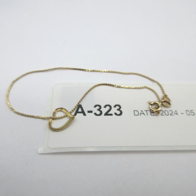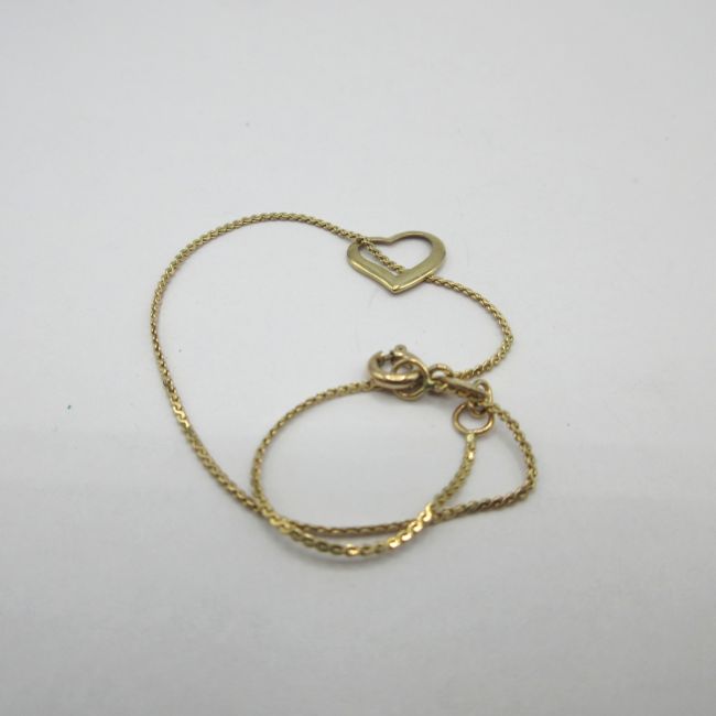 Current Bid: $47.00 [Refresh Price]YOU WILL NEED TO REFRESH THIS PAGE TO SEE UPDATED BID (Log in and this will update automatically) You must LOG IN or REGISTER to see this full page auction listing and bid. Auction is Over Winning Bid Amount: $47.00 **Lot Details: (LOT: A323) - 10K GOLD Floating Heart Bracelet And Both Verified Gold Log in to add this lot to your watch list or place a bid |