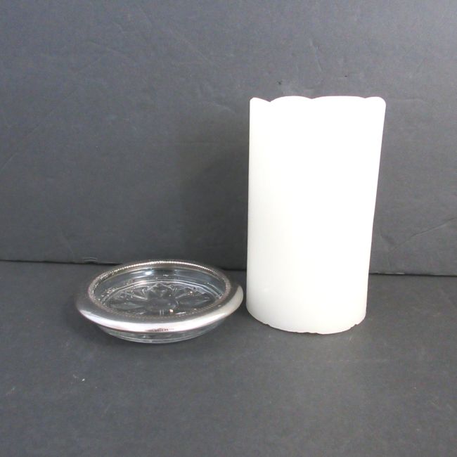 Current Bid: $[Refresh Price]YOU WILL NEED TO REFRESH THIS PAGE TO SEE UPDATED BID (Log in and this will update automatically) You must LOG IN or REGISTER to see this full page auction listing and bid. Auction is Over Winning Bid Amount: $This item did not sell **Lot Details: (LOT: A340) - Candle holder glass and metal, battery operated candle, and a silver plate coaster under the candle. Log in to add this lot to your watch list or place a bid |
