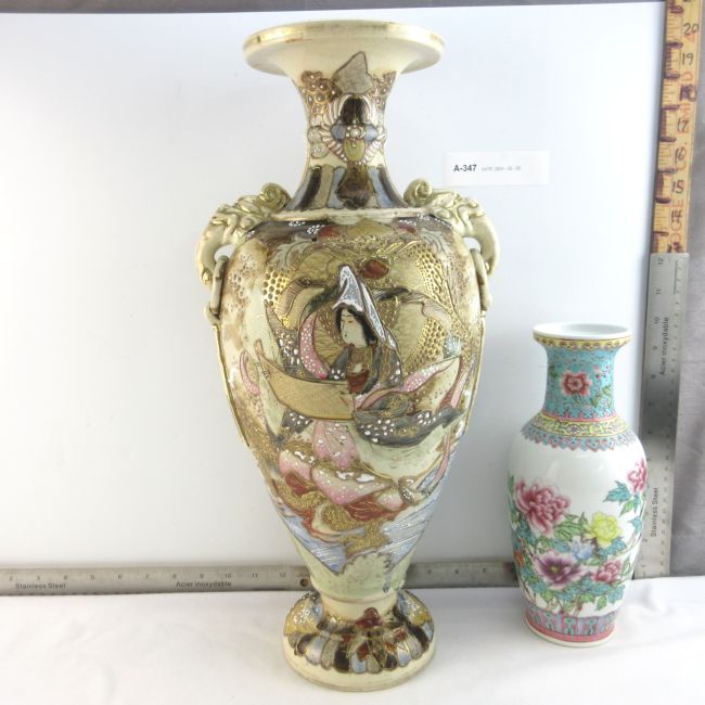 Current Bid: $5.00 [Refresh Price]YOU WILL NEED TO REFRESH THIS PAGE TO SEE UPDATED BID (Log in and this will update automatically) You must LOG IN or REGISTER to see this full page auction listing and bid. Auction is Over Winning Bid Amount: $5.00 **Lot Details: (LOT: A347) - Lot of Asian style vases the large one has a crack and some craving, but doesn’t affect it Log in to add this lot to your watch list or place a bid |
