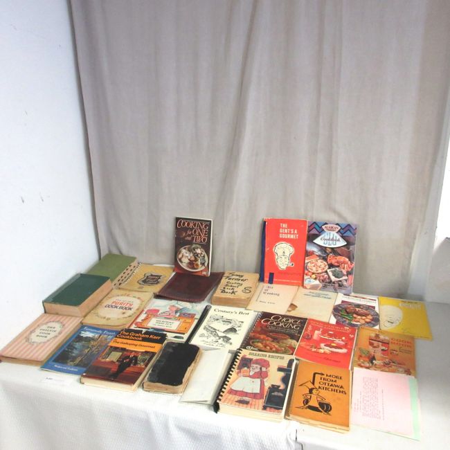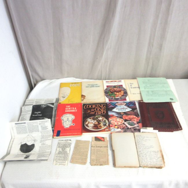 Current Bid: $5.00 [Refresh Price]YOU WILL NEED TO REFRESH THIS PAGE TO SEE UPDATED BID (Log in and this will update automatically) You must LOG IN or REGISTER to see this full page auction listing and bid. Auction is Over Winning Bid Amount: $5.00 **Lot Details: (LOT: A351) - Lots of vintage cookbooks, including handwritten recipes Log in to add this lot to your watch list or place a bid |