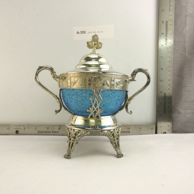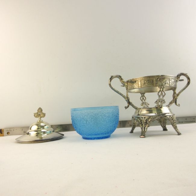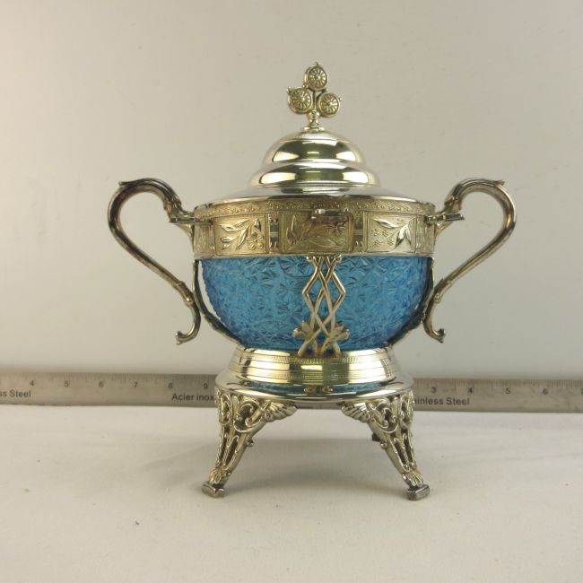 Current Bid: $32.00 [Refresh Price]YOU WILL NEED TO REFRESH THIS PAGE TO SEE UPDATED BID (Log in and this will update automatically) You must LOG IN or REGISTER to see this full page auction listing and bid. Auction is Over Winning Bid Amount: $32.00 **Lot Details: (LOT: A352) - Gorgeous Blue glass and silver plate spooner has the lid, missing the spoons Log in to add this lot to your watch list or place a bid |