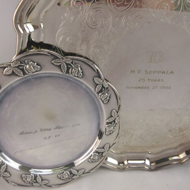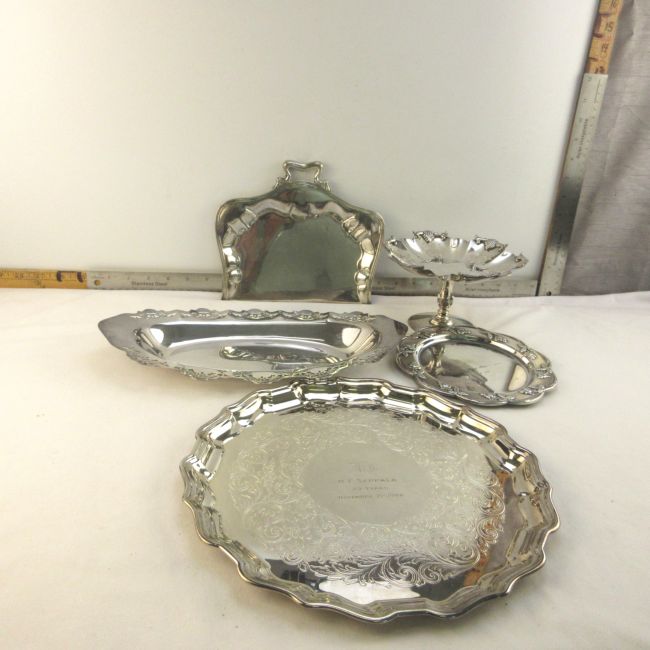 Current Bid: $5.00 [Refresh Price]YOU WILL NEED TO REFRESH THIS PAGE TO SEE UPDATED BID (Log in and this will update automatically) You must LOG IN or REGISTER to see this full page auction listing and bid. Auction is Over Winning Bid Amount: $5.00 **Lot Details: (LOT: A357) - A lot of Silver plated trays Log in to add this lot to your watch list or place a bid |