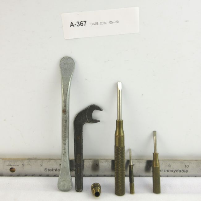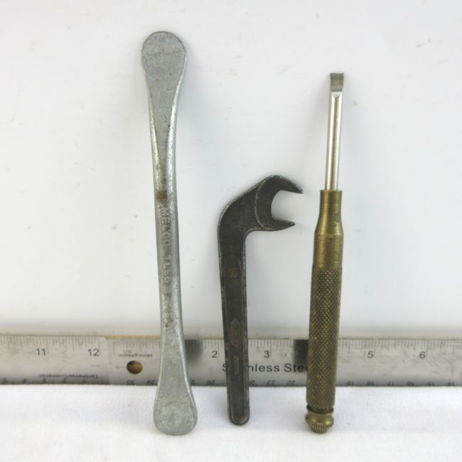 Current Bid: $9.00 [Refresh Price]YOU WILL NEED TO REFRESH THIS PAGE TO SEE UPDATED BID (Log in and this will update automatically) You must LOG IN or REGISTER to see this full page auction listing and bid. Auction is Over Winning Bid Amount: $9.00 **Lot Details: (LOT: A367) - 3 Vintage Hand Tools-Motorcycle Tire Wrench, Small Offset Wrench & Vintage 3 Piece Brass Nesting SCREWDRIVER SET in Very Good Condition Log in to add this lot to your watch list or place a bid |